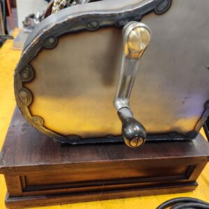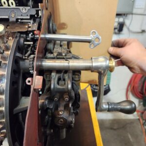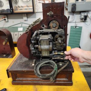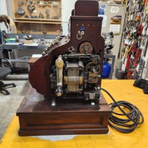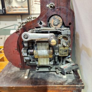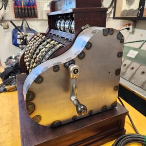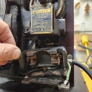 This model is electromechanical and can operate either by motor or manual cranking. The serial number has an S prefix, indicating it was returned to Toronto for service and was resold to my client’s family’s Vancouver plumbing store after 1940.