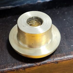 Securing the rotating manual crank handle on the register required a brass threaded knob. Though I didn’t have a source or picture to tell me what the knob should really look like, I created one that would serve the purpose.