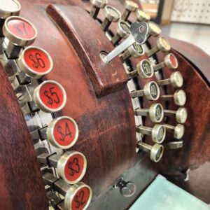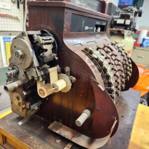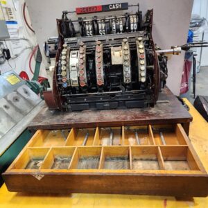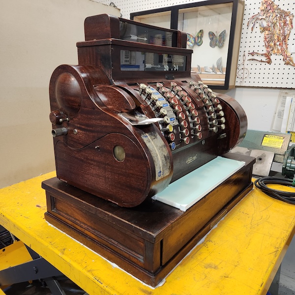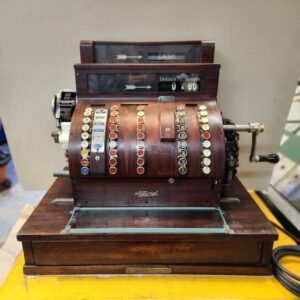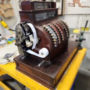 This 103-year-old, 1923-era National Cash Register 852-e spent many years in a Vancouver plumbing store owned by my client’s family. He kept it for about 36 years before choosing to restore it.