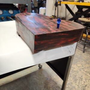 I sanded the motor case to prepare it for the eventual woodgrain finish.